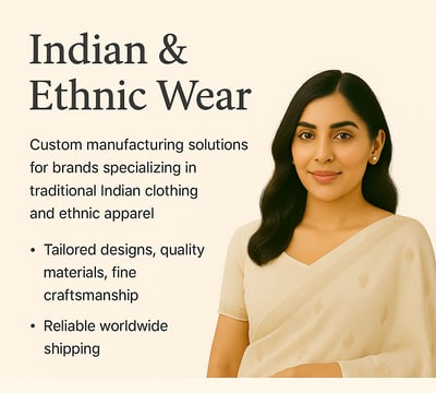 Expert clothing manufacturing for western and Indian styles tailored to your business needs.